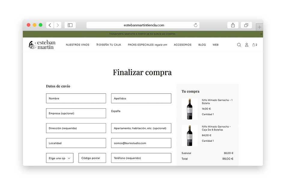 Diseño de la tienda online para Bodegas Esteban Martín, una Bodega perteneciente a la Denominación de Origen Protegida de Cariñena referente en los vinos de Aragón en continuo crecimiento y expansión.