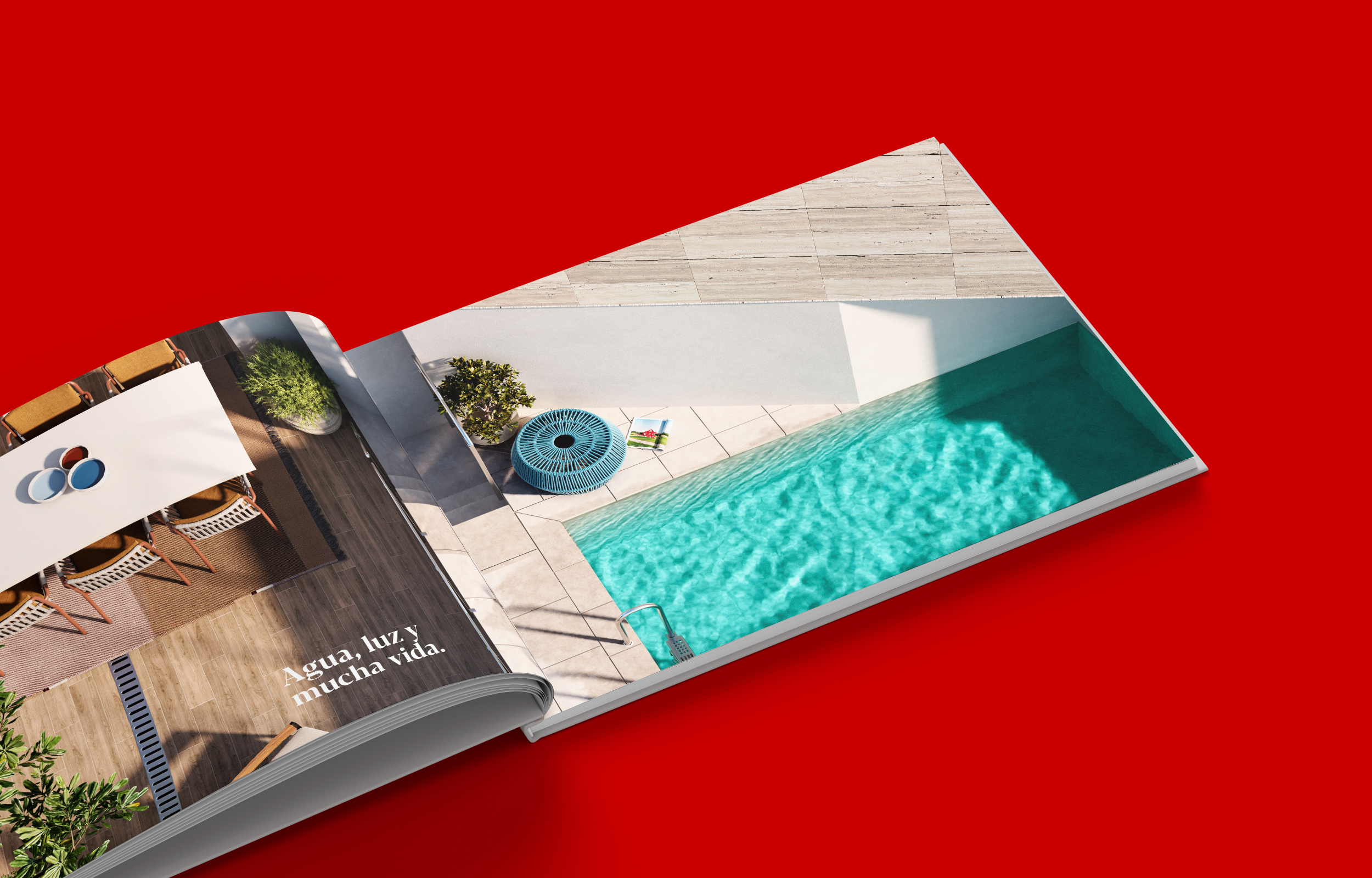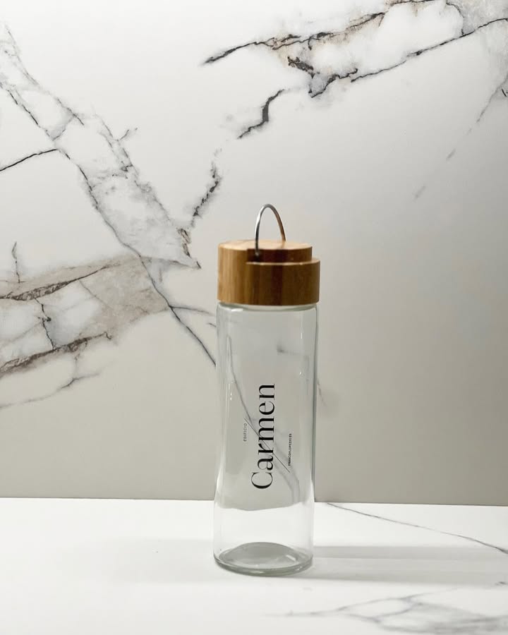 Diseñamos también el catálogo/brochure comercial, concebido como una pieza editorial cuidada que refleja el valor del proyecto y su propuesta residencial. La papelería corporativa y las distintas aplicaciones de marca refuerzan su posicionamiento premium, incluyendo detalles como el diseño del logotipo aplicado en una botella exclusiva de regalo para clientes, convirtiendo cada interacción en una experiencia.
